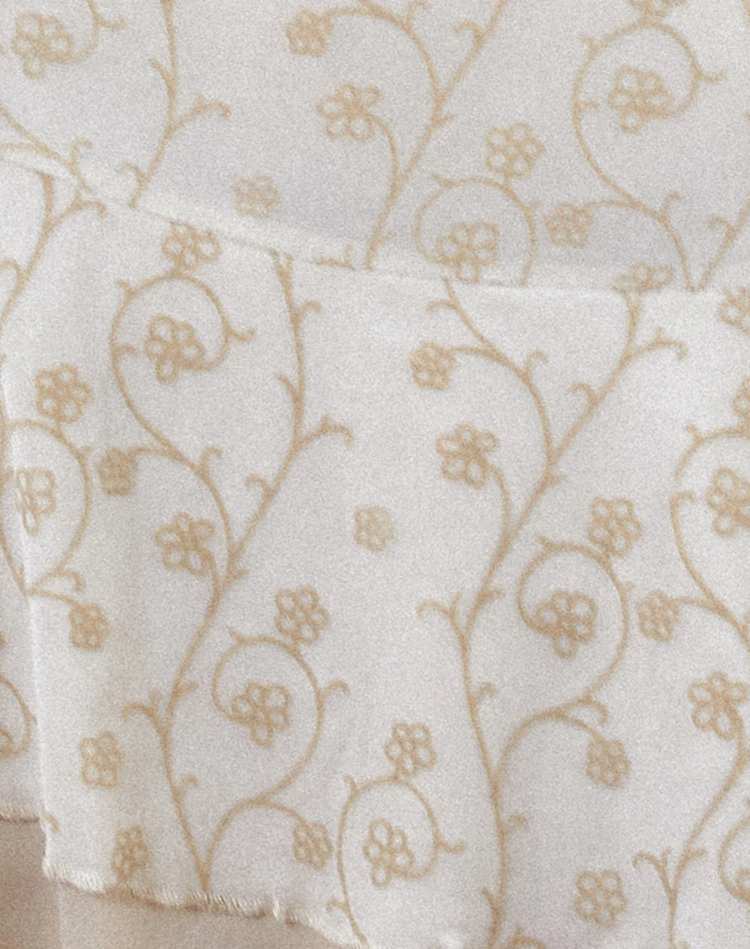 Level up your Coachella outfit with our Friska skirt in ivory with a tan flock mesh print. Featuring a two tiered design with a low rise mini fit and a 3D rose decal on waistline. Get the look with the Deska top.
