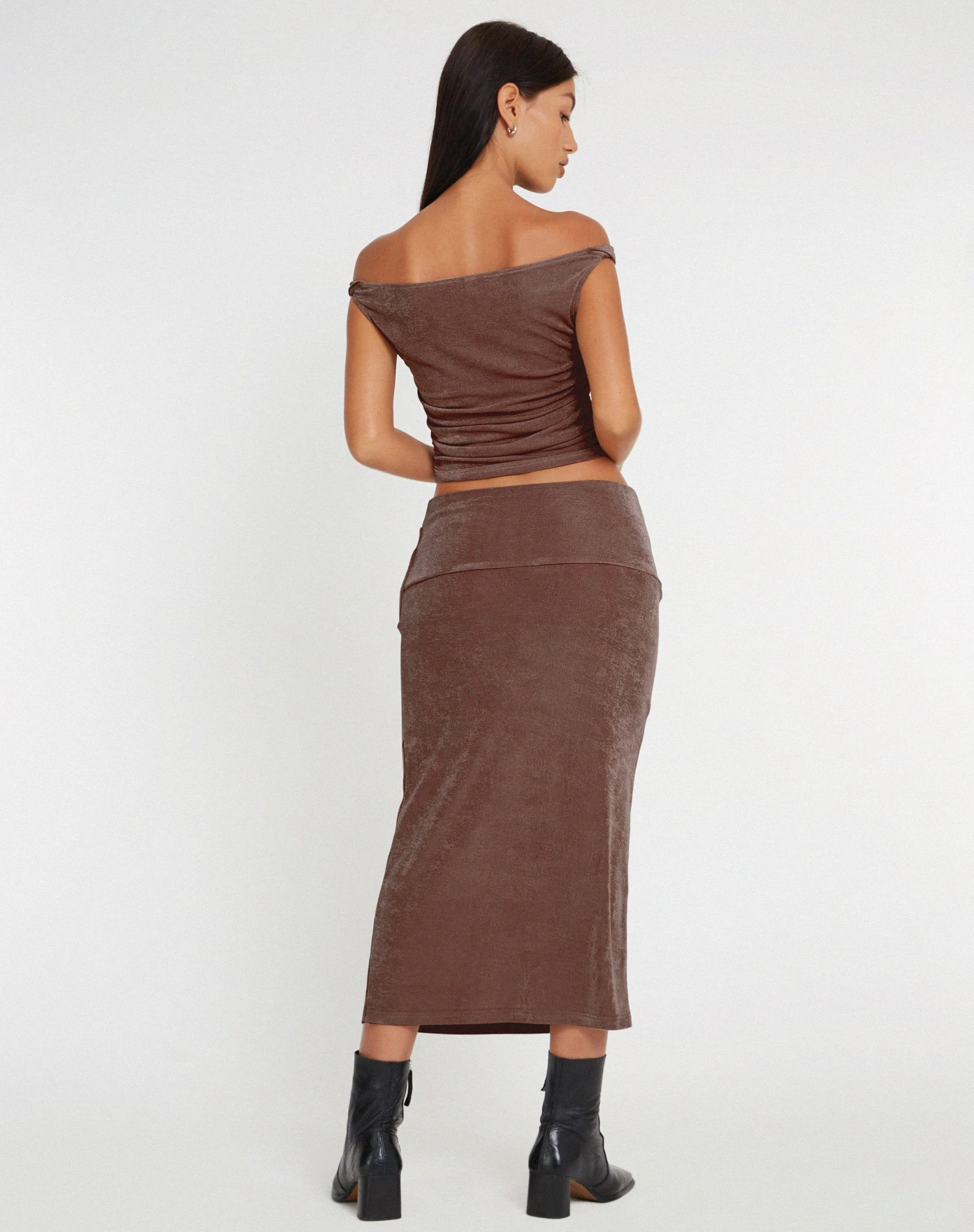 Low rise slinky crepe midi skirt with ruched side detailing. Style with our Palita Top for a classic co-ord.