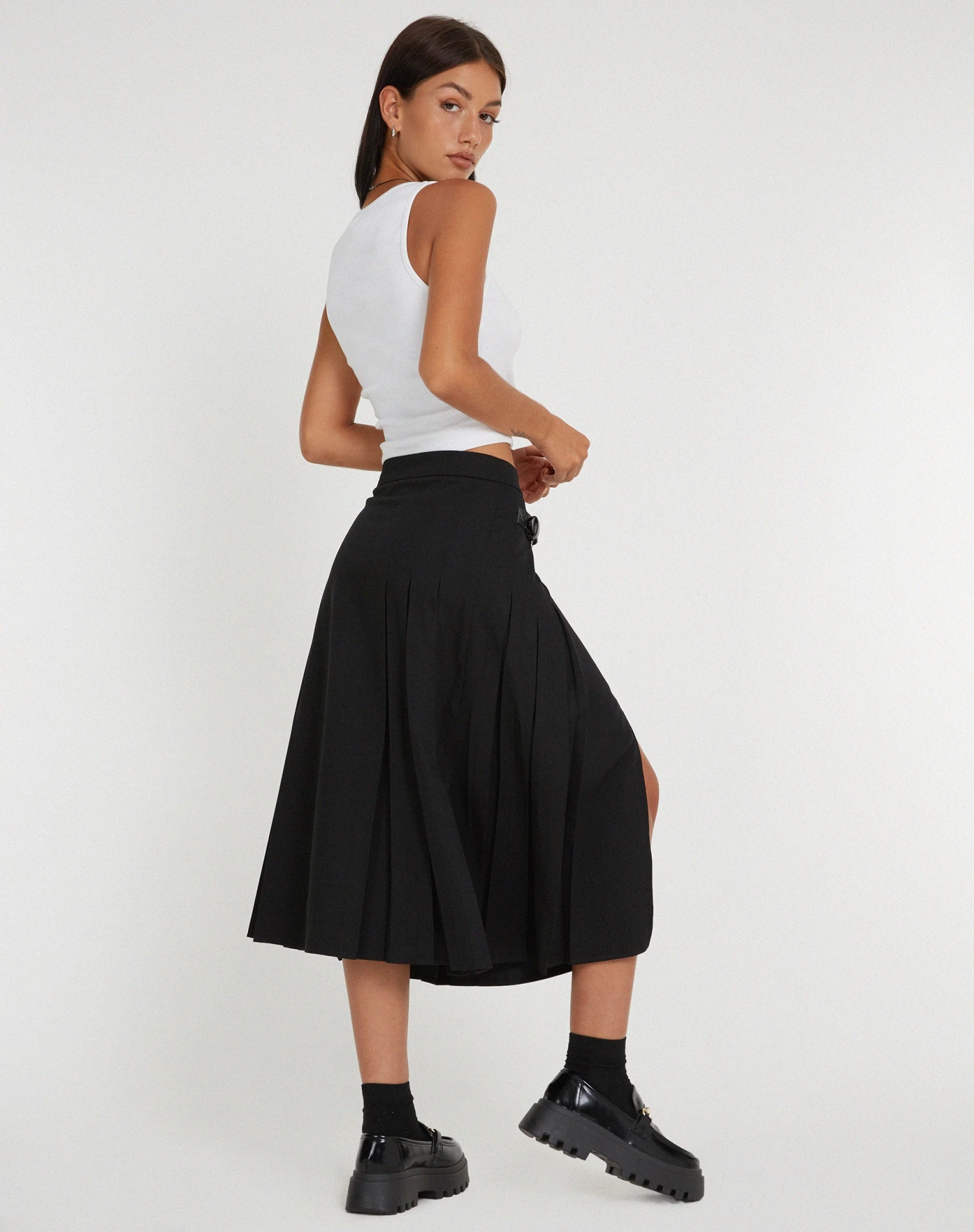 Mid rise a-line skirt in a midi length, in a black woven tailoring material. Style with our Cavita jacket classic ‘fit.