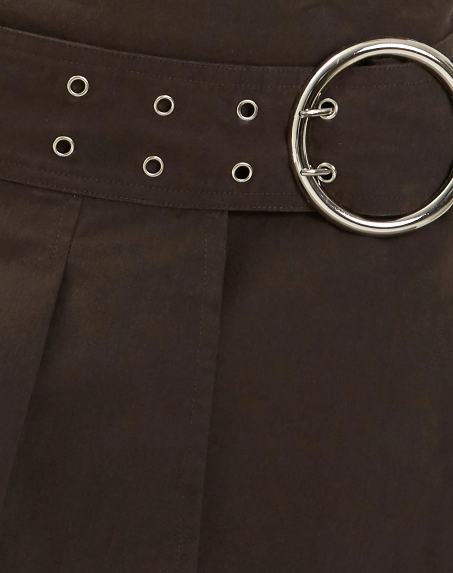 The perfect skirt this season. Our Moana micro mini skirt features a low rise design with pleated detailing and a large buckle belt with silver eyelet hardware detailing. Pair with our Ansita top.