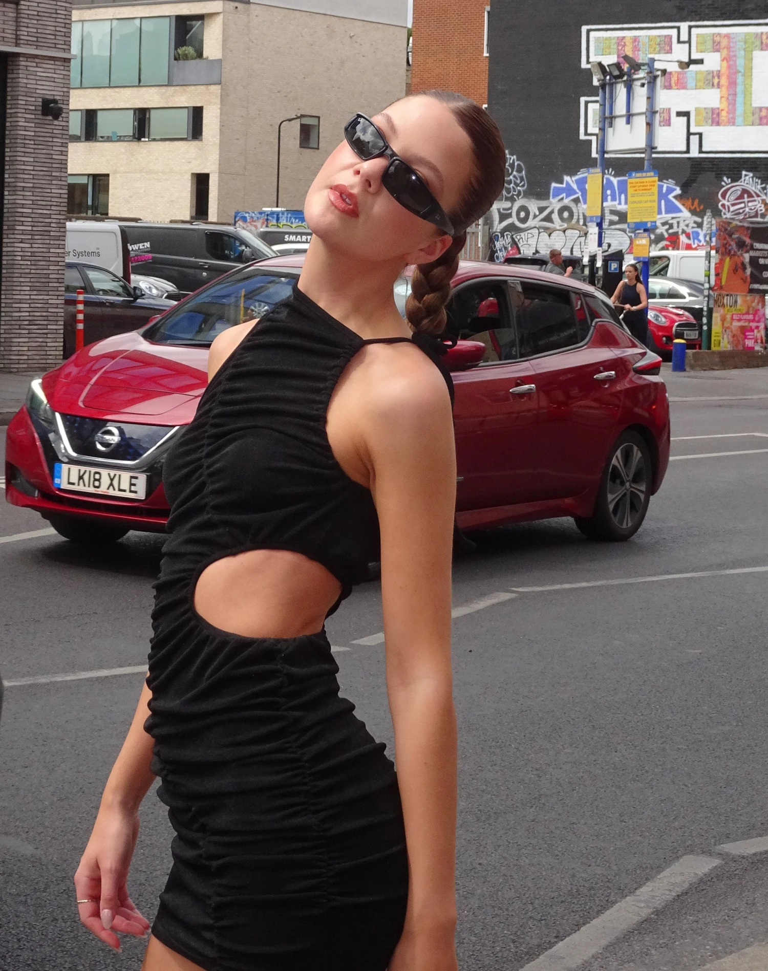 An LBD with an edge, the Osanna dress. Featuring a mini sleeveless fit with cut out detailing in black. Simply style with your fave boots.