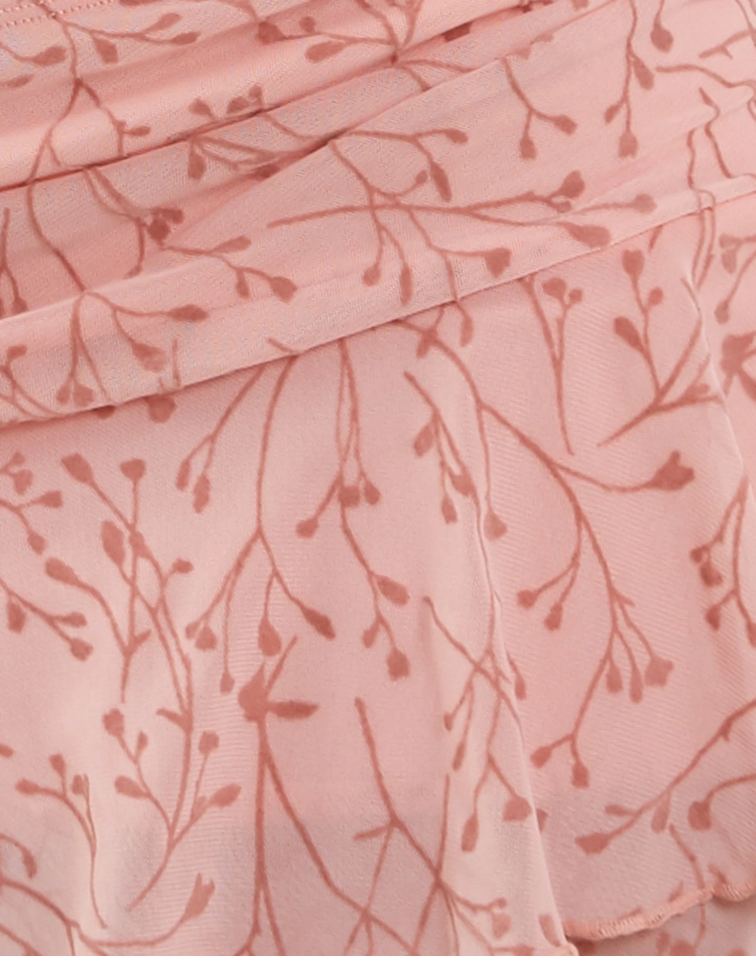 Introducing the Theri Mini Skirt. Featuring a mesh overlay in a shadow floral pink print. Pair with our Chira Top for the perfect co-ord.