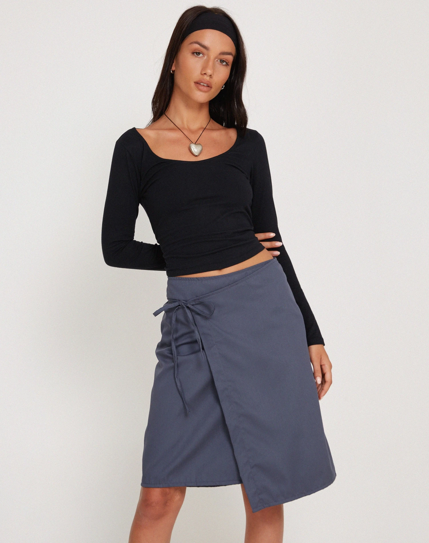 Made in a charcoal navy cotton drill fabric, our Yarbie wrap detail midi skirt is the ultimate easy wear outfitting piece. Featuring an A-line fit and tie fastening. Style with our Bonlo Top.